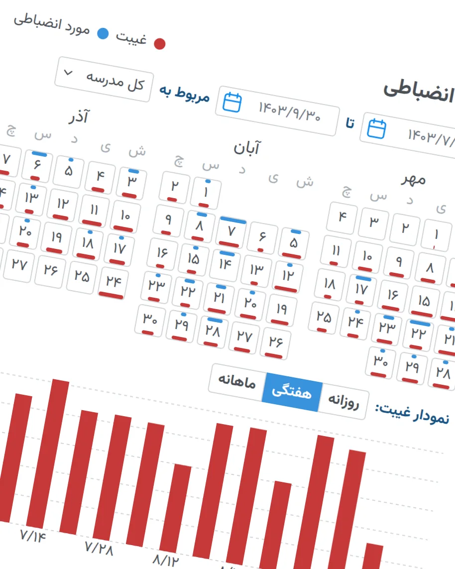 - دسترسی مدیریت و معلم به آمار غیبت دانشآموز