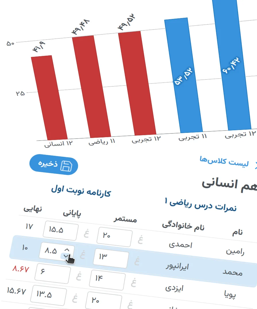 - امکان مقایسه عملکرد دانشآموز با میانگین کلاسی