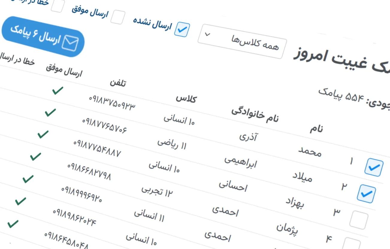 - اطلاعرسانی به والدین در مورد غیبت دانشآموز از طریق پیامک